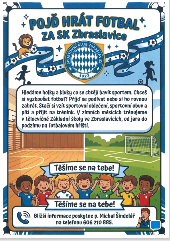 Sportovní klub Zbraslavice přivítá další hráče do svých týmů.