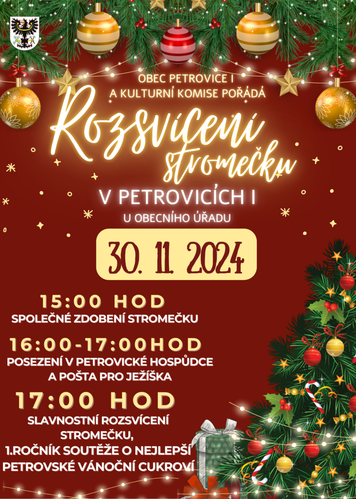 Přijďte na společné zdobení vánočního stromečku, posezení a slavnostní rozsvícení. Akce proběhne 30. 11. 2024.Těšit se můžete na soutěž o nejlepší vánoční cukroví!Budeme rádi, pokud se zapojíte do vánoční soutěže. Bližší informace se dočtete na letáčcích. Těšíme se na příjemné předvánoční setkání.